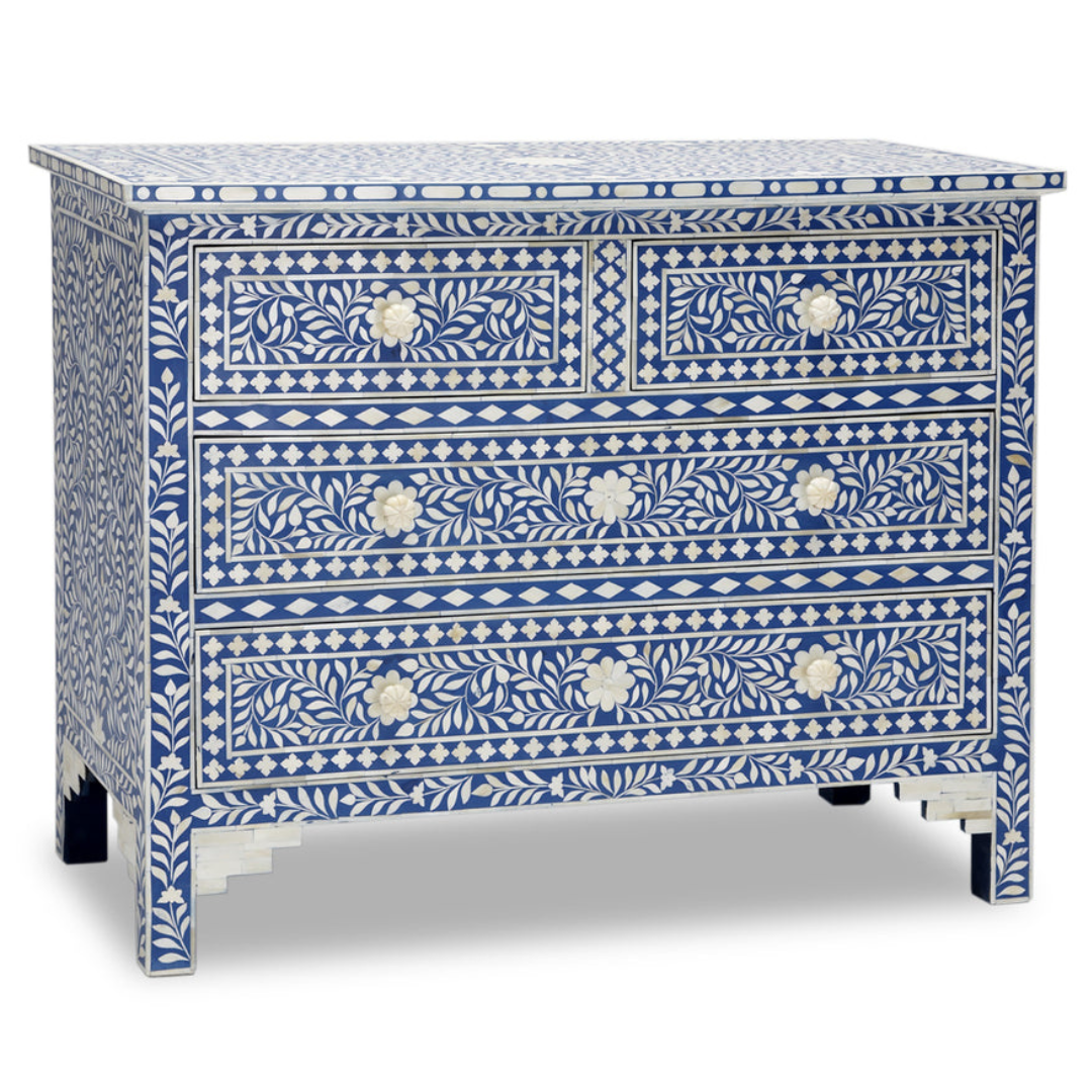 خزانة أدراج من اليشم - تطعيم عظمي أزرق