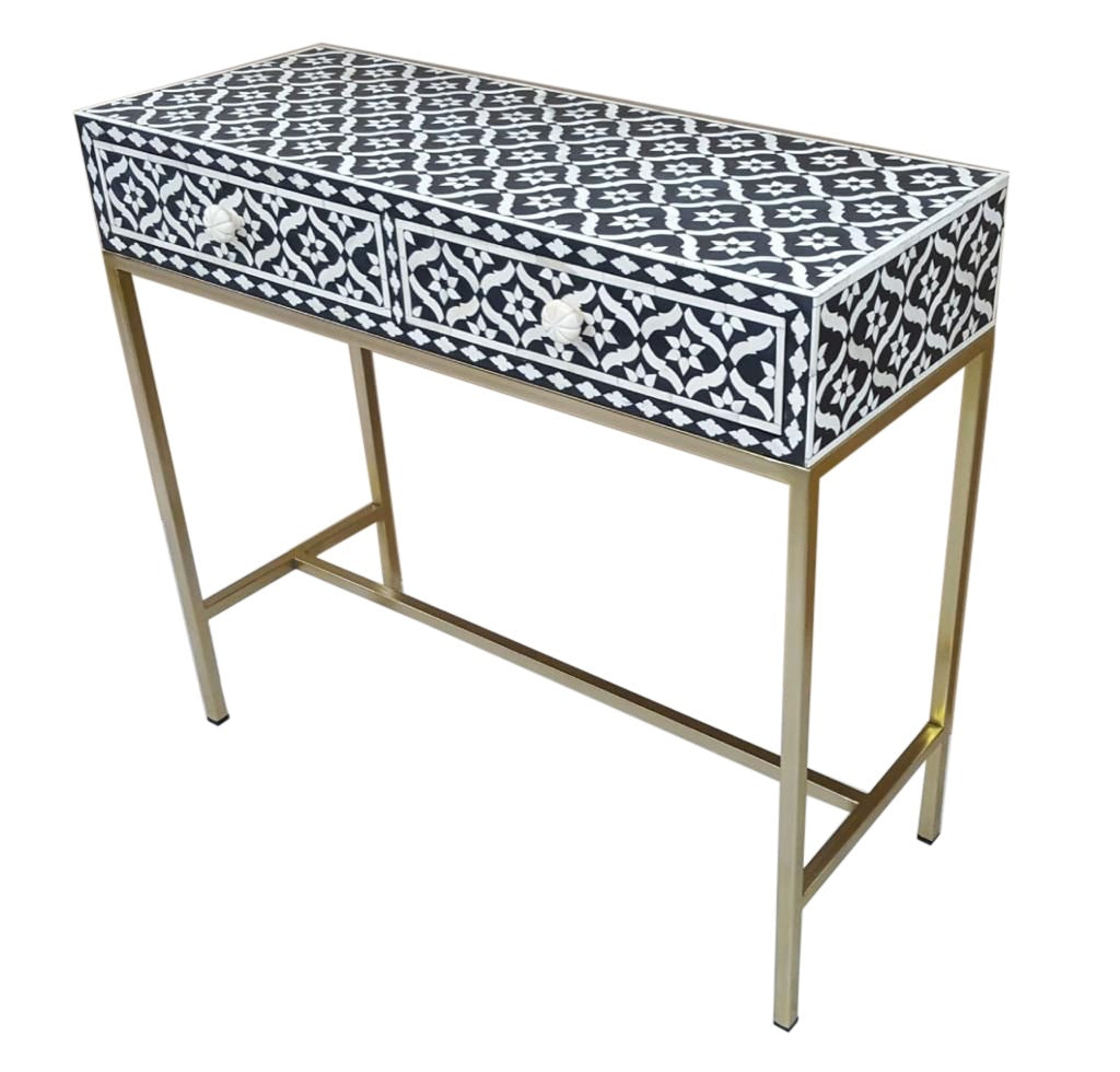 استمتع بالجمال الأخاذ للوحة التحكم Inayat Bone Inlay Console. تعرض هذه القطعة الرائعة براعة الصنع الدقيقة وتصميمات تطعيم العظام المعقدة، والتي تم إنشاؤها بدقة من قبل الحرفيين المهرة. تخلق الأنماط والقوام المذهلة وليمة بصرية للعين، وتضيف لمسة من الأناقة والرقي إلى أي غرفة. توفر مساحة السطح السخية للوحدة مساحة واسعة للديكور، بينما يضمن هيكلها القوي المتانة. سواء تم وضعها في الردهة أو غرفة المعيشة أو غرفة النوم، فإن لوحة التحكم Inayat Bone Inlay Console تجمع بسهولة بين الأناقة والوظائف، مما يجعلها إضافة مميزة لديكور منزلك. دع هذه القطعة الرائعة تصبح النقطة المحورية لمساحتك، وتعرض ذوقك الرفيع وتعزز ديكورك الداخلي بجاذبيتها الرائعة.