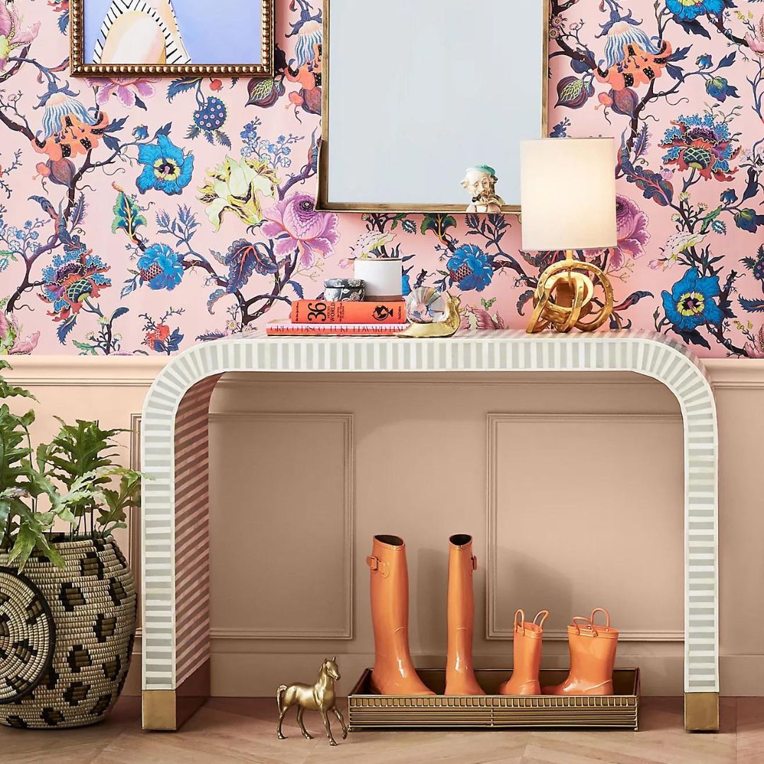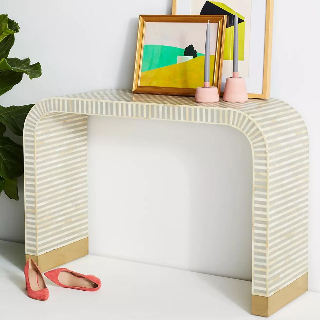 طاولة كونسول - مرصعة باللون الرمادي الباهت