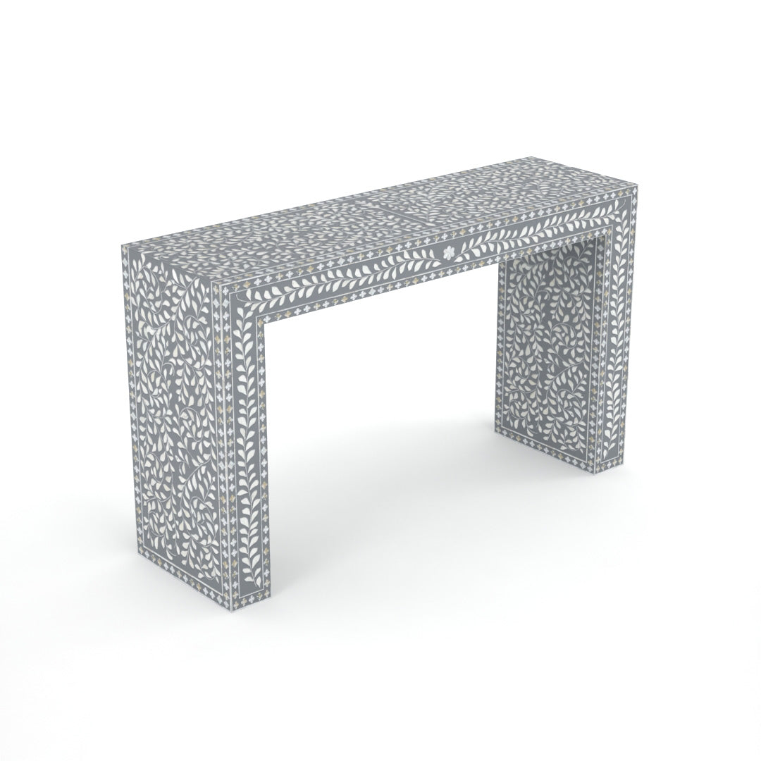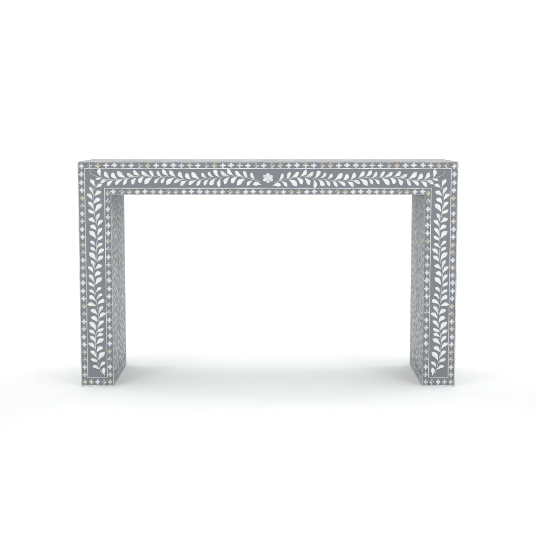 نقدم لك طاولة Jade Console Table، وهي شهادة مذهلة على جمال التطعيم العظمي الرمادي. يبلغ قياس هذه القطعة 135x45x75 سم (عرض × ارتفاع)، وتجمع بين أناقة الحرفية التقليدية وحس التصميم الحديث.