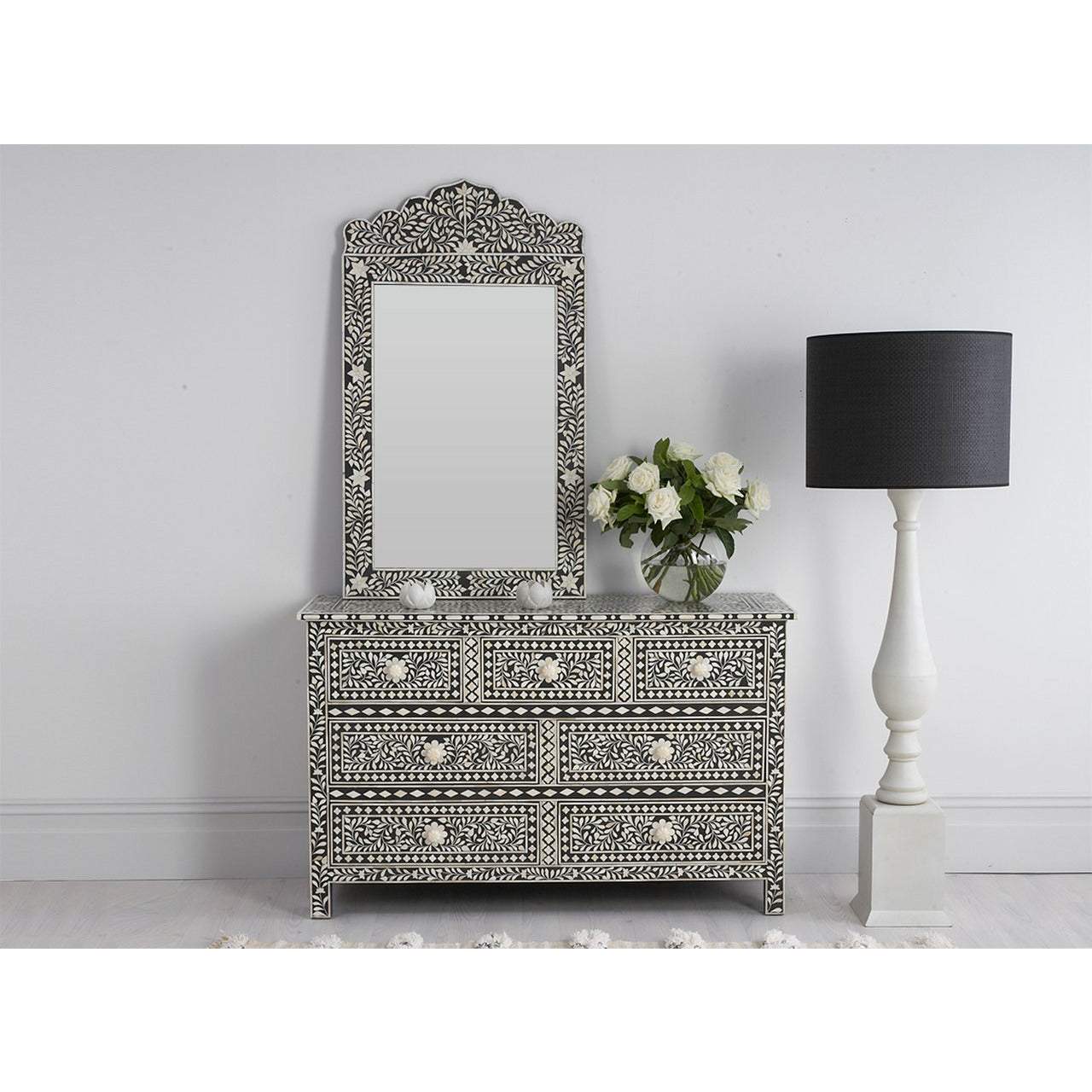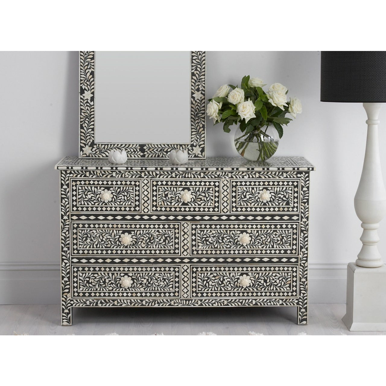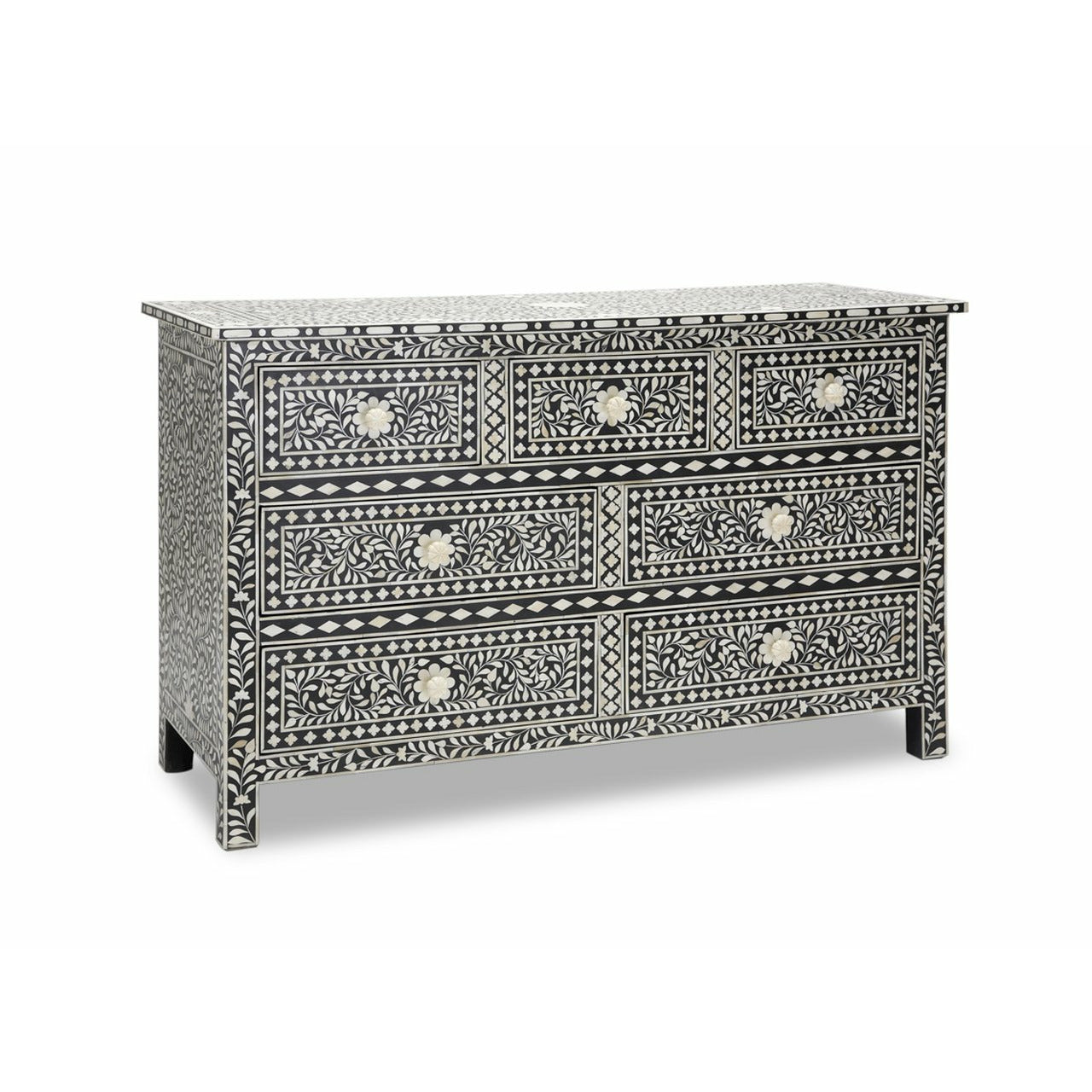 Coorg Big Chest of Drawers - Black Bone Inlay